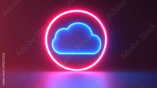 Colorful neon cloud icon illuminated in a dark space, representing modern technology, data storage, and digital connectivity.