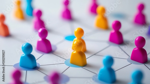 Colorful Network of Figurines Representing Connections and Collaboration in a Virtual Community