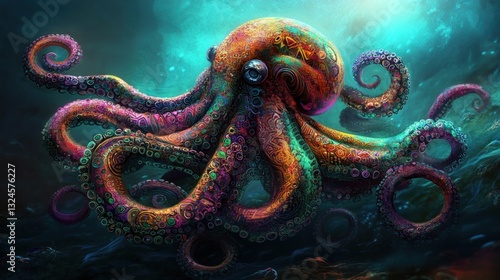 Colorful Octopus in Deep Ocean