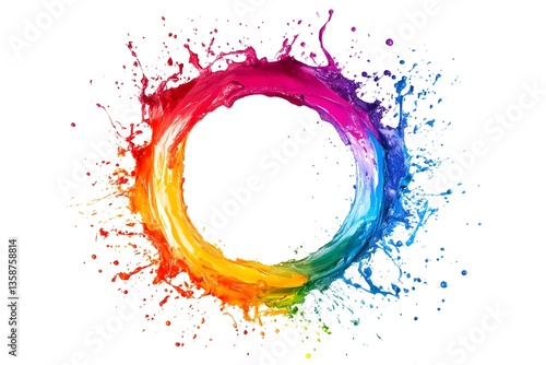 Colorful Paint Splashes Forming an Elegant Circle. Abstract 3D Background with Copy Space.