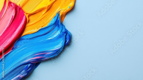 Colorful paint strokes on a blue background for artistic expression.