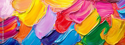 Colorful paint with visible brush strokes. Close-up of an abstract, vibrant art painting texture background.