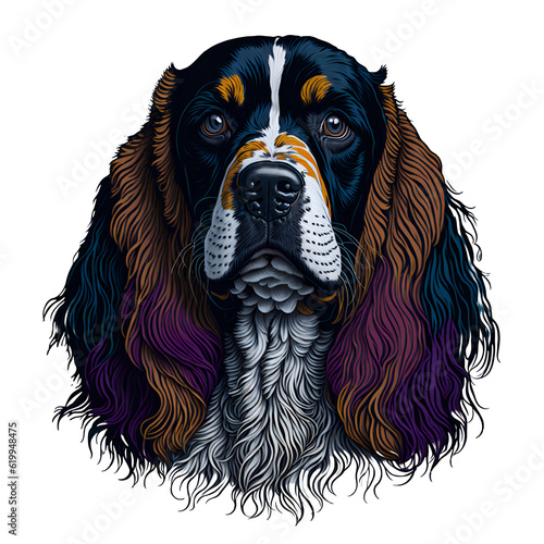 "Colorful Palette Illustration of English Cocker Spaniel - Full Color Portrait" - Generative AI
