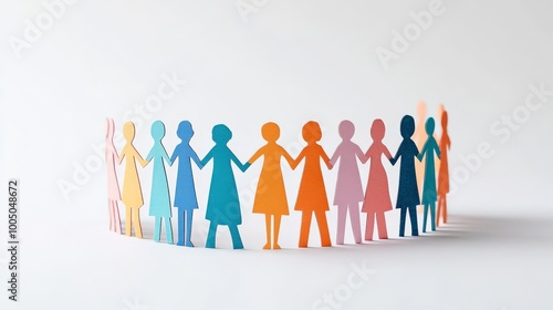 Colorful paper cutouts of diverse women holding hands, symbolizing unity and empowerment.