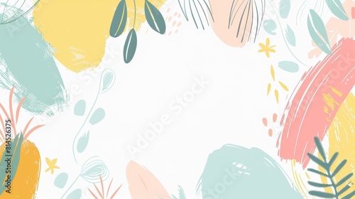 Colorful pastel cute cartoon simple flat vector frame background with hand drawn colorful soft blob shapes on white background, in the style of a minimal edit.