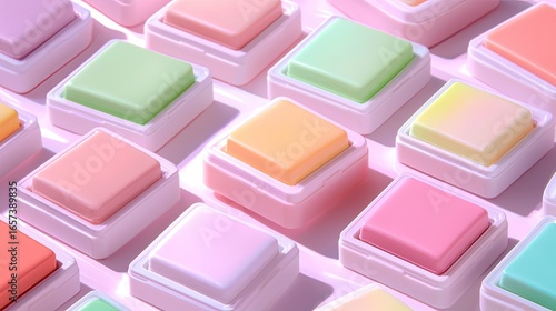 Colorful Pastel Squares in Neat Rows on Soft Pink Background for Creative Projects and Digital Designs
