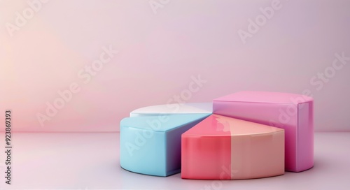 Colorful Pie Chart Model Displayed on Pink Background in Modern Design Studio