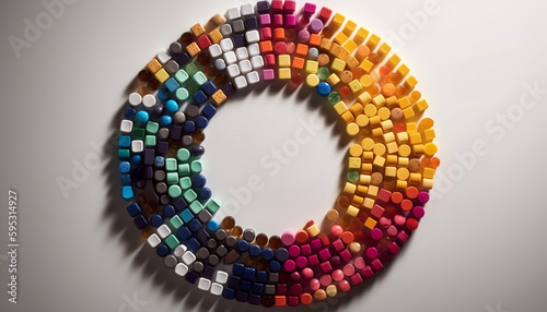 Colorful pills in a patterned capsule heap generated by AI
