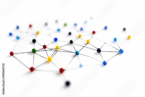 Colorful Pins Connected by Lines Representing Network Connection or Collaboration