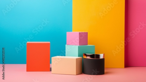 Colorful podium cylinders in pastel background for product display minimal design mockup image scene photo