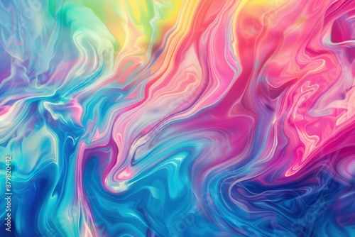 Colorful psychedelic backdrop. Shimmering liquid design. Vibrant holographic print. Psychedelic rainbow ripples. Whimsical swirls influence