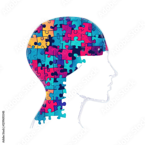 Colorful Puzzle Brain Concept Representing Mental Health and Creativity