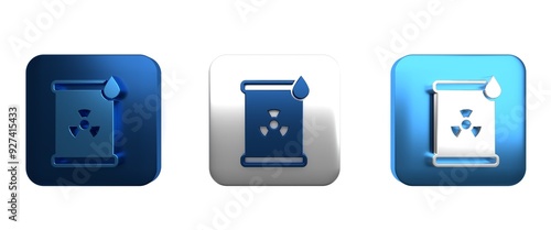 Colorful Radioactive waste in barrel icon isolated on white background. Toxic refuse keg. Radioactive garbage emissions, environmental pollution. Square button. 3D render illustration