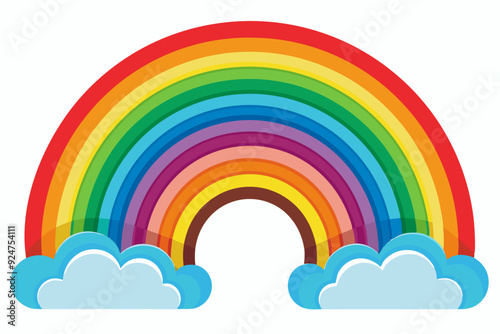 Colorful Rainbow Arch with Two Fluffy Clouds