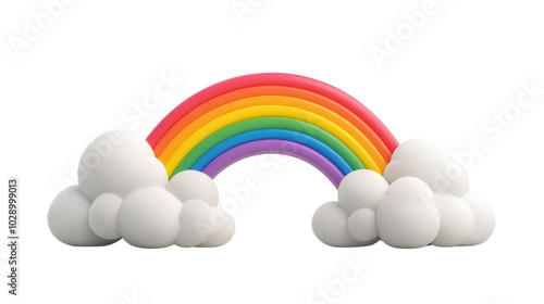 Colorful rainbow arching over fluffy clouds, isolated on transparent background