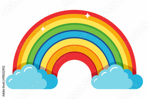 Colorful Rainbow Arcing Over Two Clouds with White Stars