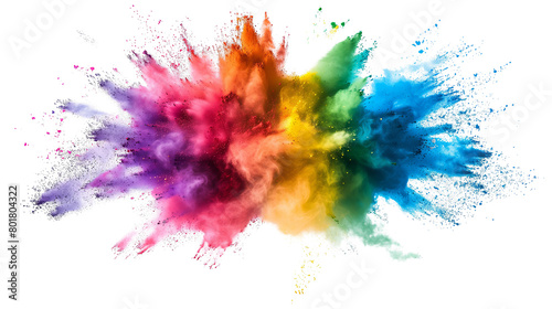 Colorful rainbow powder explosion on a transparent background. Generative AI