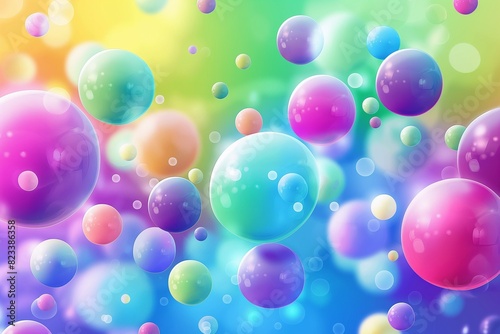 Colorful random flying spheres abstract background. Colorful rainbow matte soft balls in different sizes. Vector background