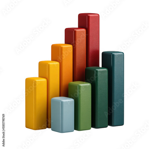 Colorful rectangular blocks arranged in ascending bar chart formation isolated on transparent background