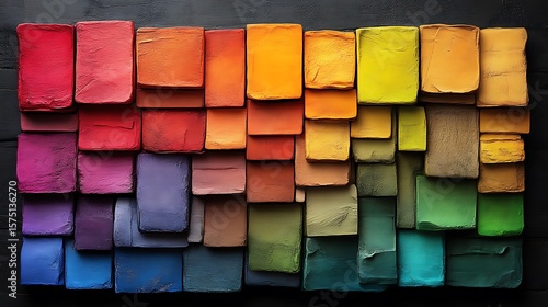 Colorful rectangular shapes arranged in a design.