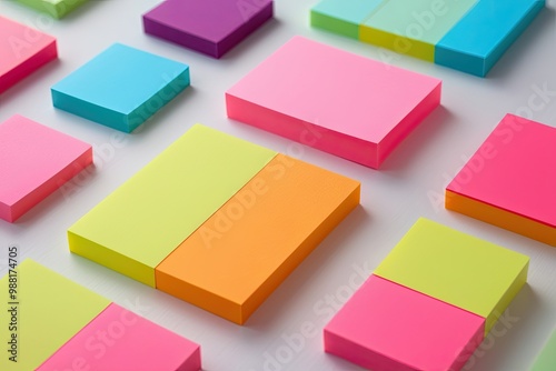 Colorful Rectangular Sticky Notes Displayed on a Crisp White Background