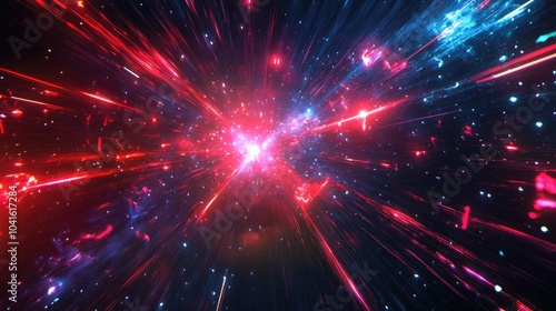 Colorful red and blue laser lights create a cosmic background in this 3D cartoon rendering ideal for digital wallpaper