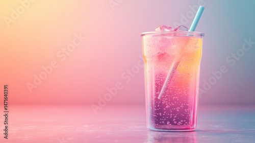 Colorful Refreshing Drink with Ice and Straw on a Vibrant Background for Summer Appeal