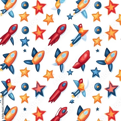 Colorful Rockets and Stars Pattern for Fun and Playful Backgrounds or Textiles for Children