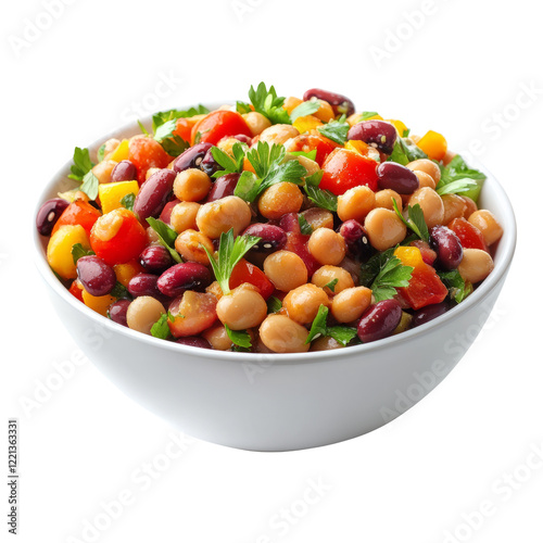 Colorful salad bowl with mixed beans and vegetables on a transparent background