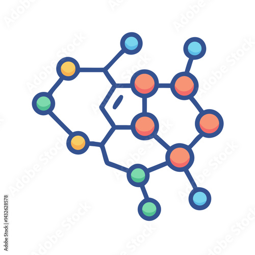 Colorful Science Molecule Structure on Black Background Illustration