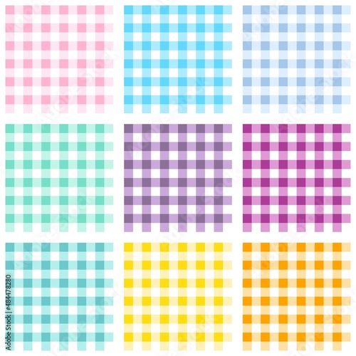 Colorful seamless plaid tablecloth gingham pattern collection on the white background. Vector illustration.