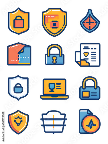 Colorful Security and Privacy Icons with Shields, Locks, and Data Protection Symbols.., generative ai image