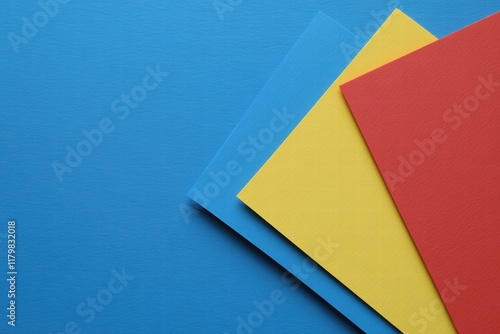 Colorful Sheets of Paper in Blue, Yellow, and Red on Background