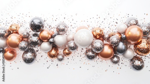 Colorful Shiny Balls with Glitter and Confetti on White Background