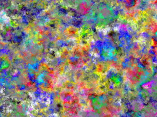 Colorful sky, marble shapes, lights, clouds, abstract background