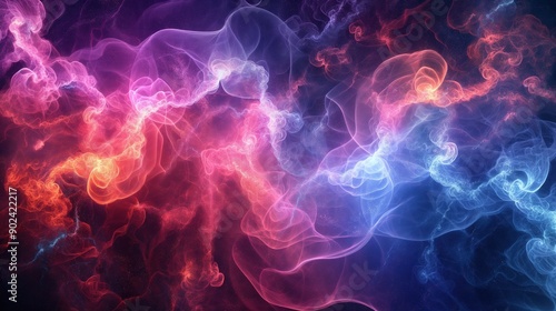 colorful smoke clouds abstract fantasy-inspired style dynamic visually appealing patterns dark background reds pinks blues purples swirling shapes cloud