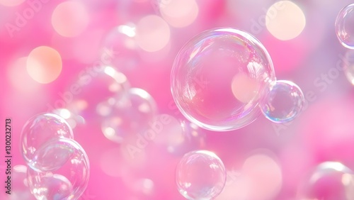 Colorful soap bubbles floating against a soft pink background, creating a dreamy and whimsical atmosphere. Concept Soap Bubbles, Dreamy Background, Whimsical Atmosphere, Colorful Aesthetics