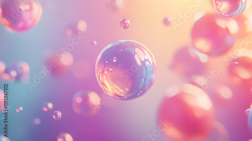 Colorful Soap Bubbles Floating in Air with Soft Light Background