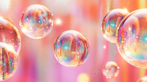 Colorful Soap Bubbles Floating in Air with Soft Pastel Background and Sparkling Effects