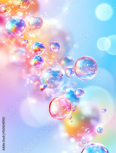 Colorful soap bubbles in soft light