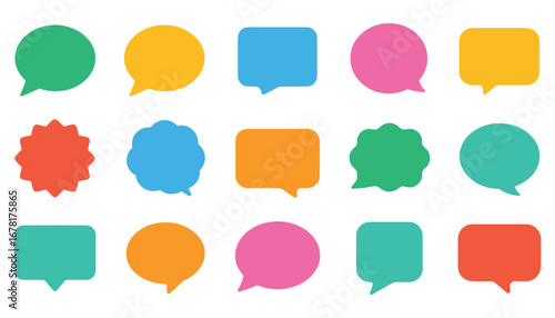 Colorful Speech Bubble Icons Vector Set Chat, Message, Dialogue Shapes Collection