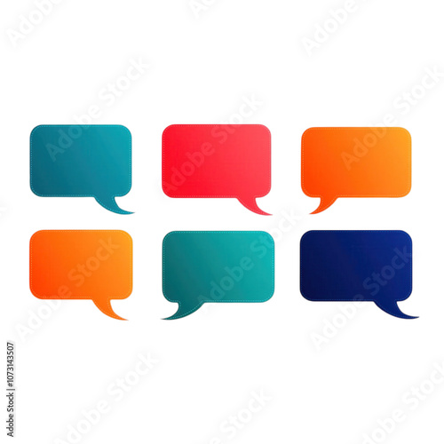 Colorful speech bubbles arranged in a grid, showcasing vibrant hues of blue, red, orange, and teal, suggesting communication and conversation.