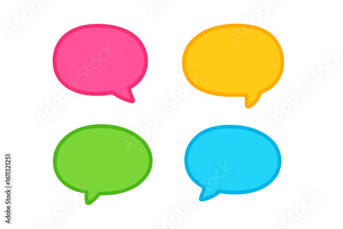 Colorful Speech Bubbles Collection, Vibrant Blank Chat Balloons, Social Media Message Icons, Cartoon Communication Symbols, Isolated Set for Design, Clipart, Dialogue Concept, Vector Illustration