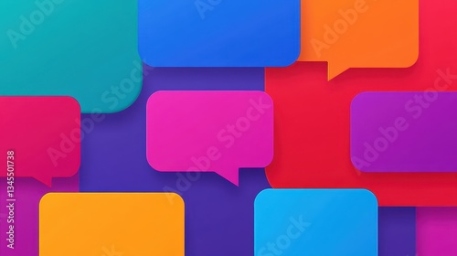 Colorful speech bubbles in vibrant shades, dynamic background for discussions, ideal for social media or communication themes.