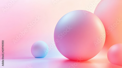 Colorful spheres and flowing waves in the background