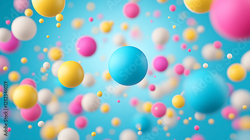 Colorful spheres of various sizes floating against a vibrant blue background, creating a playful atmosphere