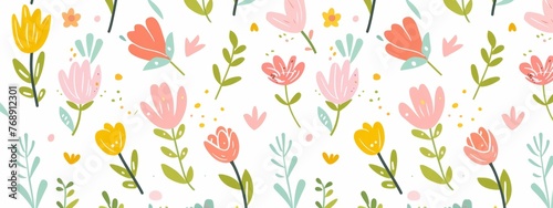 Colorful spring floral pattern background in the style of white color, pastel colors, simple, cute style Generative AI