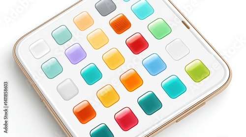 Colorful Square Module with Various Shiny Gems Displayed on a White Surface for Design Purposes