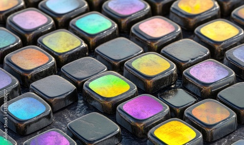 Colorful square tiles pattern, textured surface, abstract background, design element