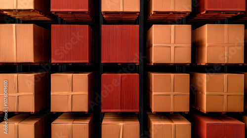 Colorful stacked boxes showcasing organization in a modern warehouse environment.